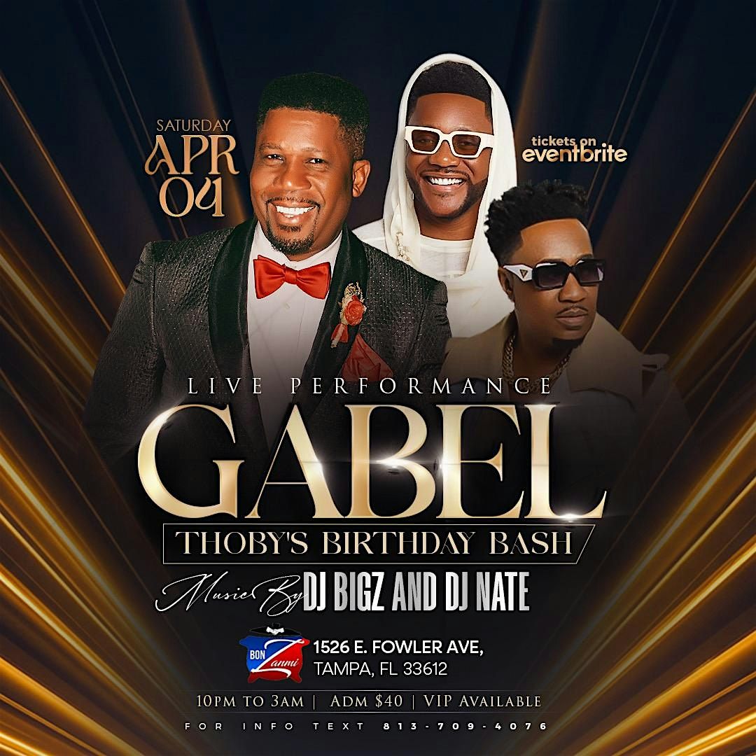 Get ready, Tampa! Gabel is coming live on April 4, 202 for Thoby's birthday!! Music by Dj B& Dj Nate! This is your chance to catch an amazing in-person show filled with great vibes and unforgettable tunes. Don’t miss out on an epic night with Gabel right here in Tampa. Mark your calendar and join the fun!