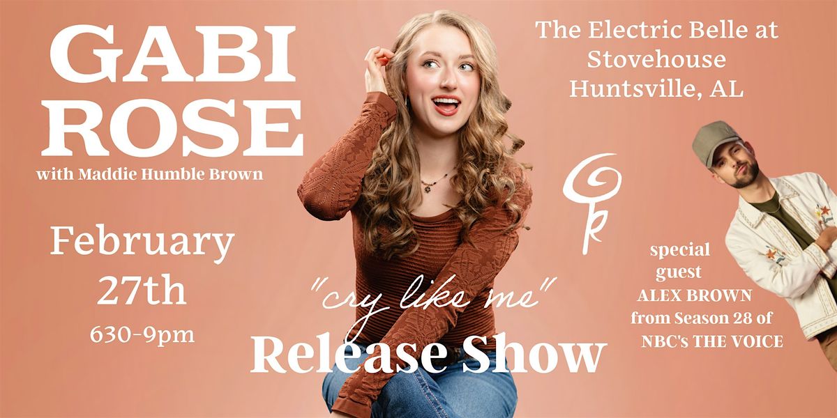 Welcome to Gabi Rose "cry like me" Release Show with Maddie Brown! Join us at The Electric Belle at Stovehouse in Huntsville, AL to celebrate the release of her first single. Backed by full band and joined by special guest Alex Brown from NBC's Season 28 of The Voice, get ready to experience Gabi Rose's powerful vocals and emotional lyrics as she performs her new single live for the first time. Don't miss out on this special event where you can be one of the first to hear this incredible song in person. Grab your friends and come support Gabi Rose as she takes the stage and shares her music with the world. It's going to be a night to remember!