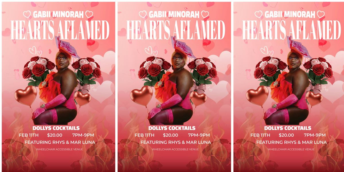 Turn up the heat this Valentine season with Gabii Minorah joined by Rhys and Mar Luna on Hearts Aflame. A high-energy drag spectacular featuring live vocals, fierce performances, and nonstop passion. Set in a stunning venue Dollys Cocktail bar filled with romance and glamour, this show celebrates love loud, bold, and unapologetically fabulousness.