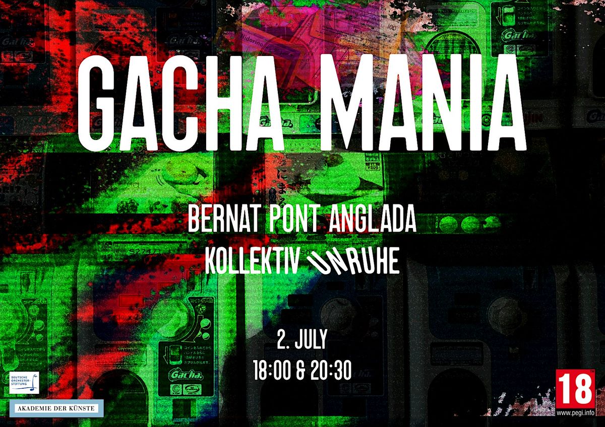 Die Multimediashow GACHA MANIA folgt dem inneren Kampf eines Teams von Video Game Sounddesigner*innen, die davon besessen sind, den perfekten Öffnungs-Sound für eine Lootbox zu schaffen. Mit Musik, Theater, Video und Gaming zeichnet das Stück ein tragikomisches Porträt des digitalen Kapitalismus und zeigt, wie versteckte Glücksspielmechanismen spielerisch die Wahrnehmung, das Verlangen und das Verhalten im Alltag beeinflussen.