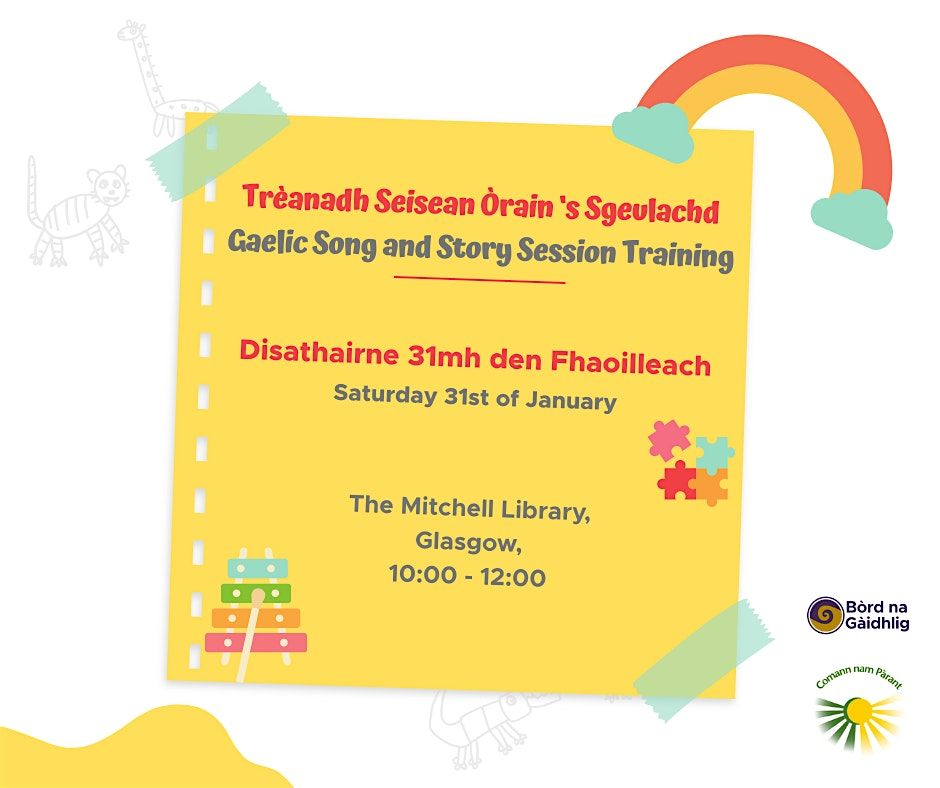 Bòrd na Gàidhlig and Comann nam Pàrant have organised a training session for people who would like to deliver Gaelic early years song and story sessions.