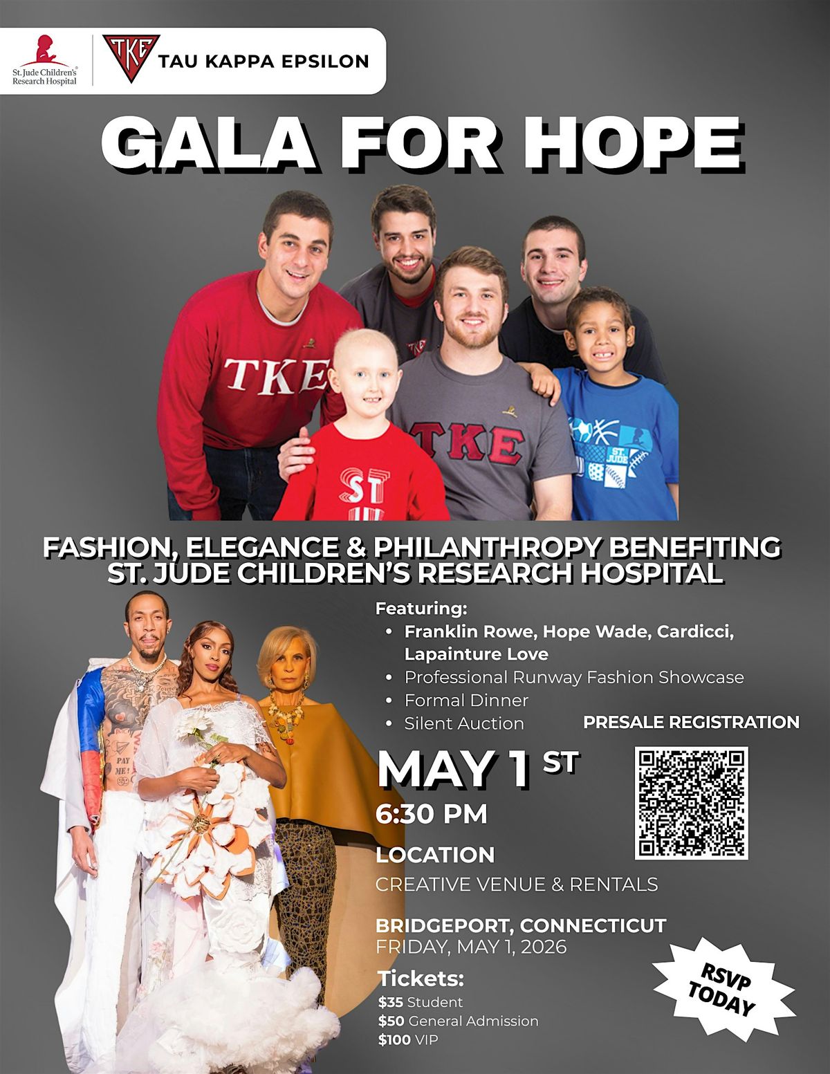 Join us for an unforgettable evening at the Gala for Hope, a fashion-forward fundraising event benefiting St. Jude Children’s Research Hospital. Hosted by the Tau Eta Chapter of Tau Kappa Epsilon at Southern Connecticut State University, this event brings together fashion, community, and philanthropy to support children battling cancer and other life-threatening diseases.