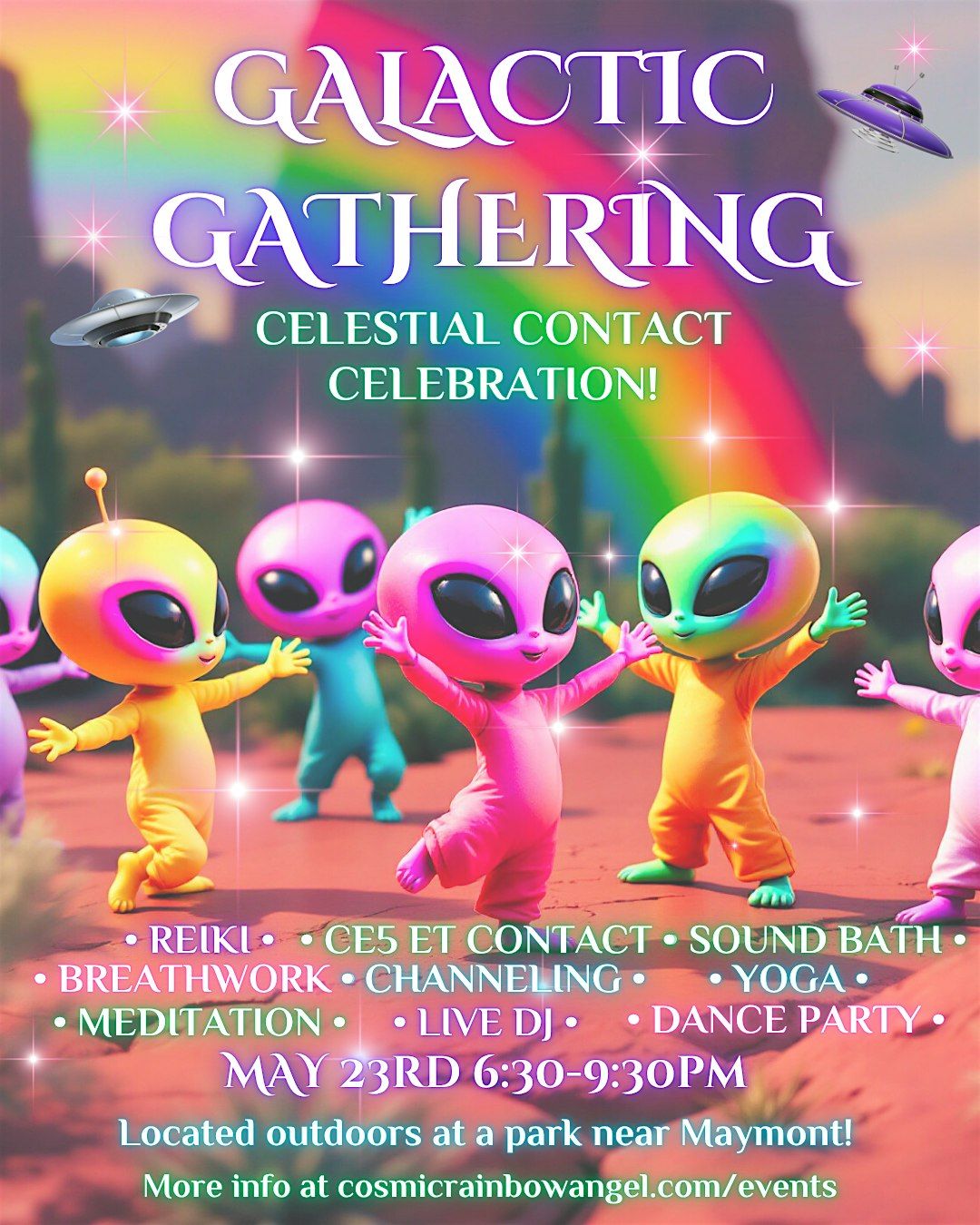 π½ CE5 Contact: Gather together for a lighthearted, joyful, and playful experience to synchronize your consciousness with the group and open your heart with the intention to connect with extraterrestrials, ascended masters, angelic beings, spirit guides, ancestors, departed loved ones, and benevolent celestial beings of all kinds! π