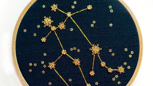 Join us in learning embroidery techniques while creating an out-of-this-world galaxy design! You will choose from a variety of patterns and embroidery colors. An additional technique of adding beading to a piece will be taught. No previous experience is required.