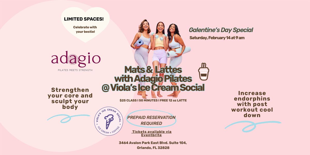 Galentine Day Special Mats & Lattes with Adagio Pilates @ Viola's Ice Cream
