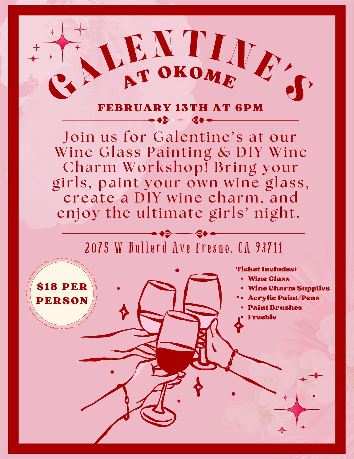 Join us for Galentine’s for Wine Glass Painting & DIY Wine Charm Workshop! Bring your girls, paint a wine glass, create a DIY wine charm.