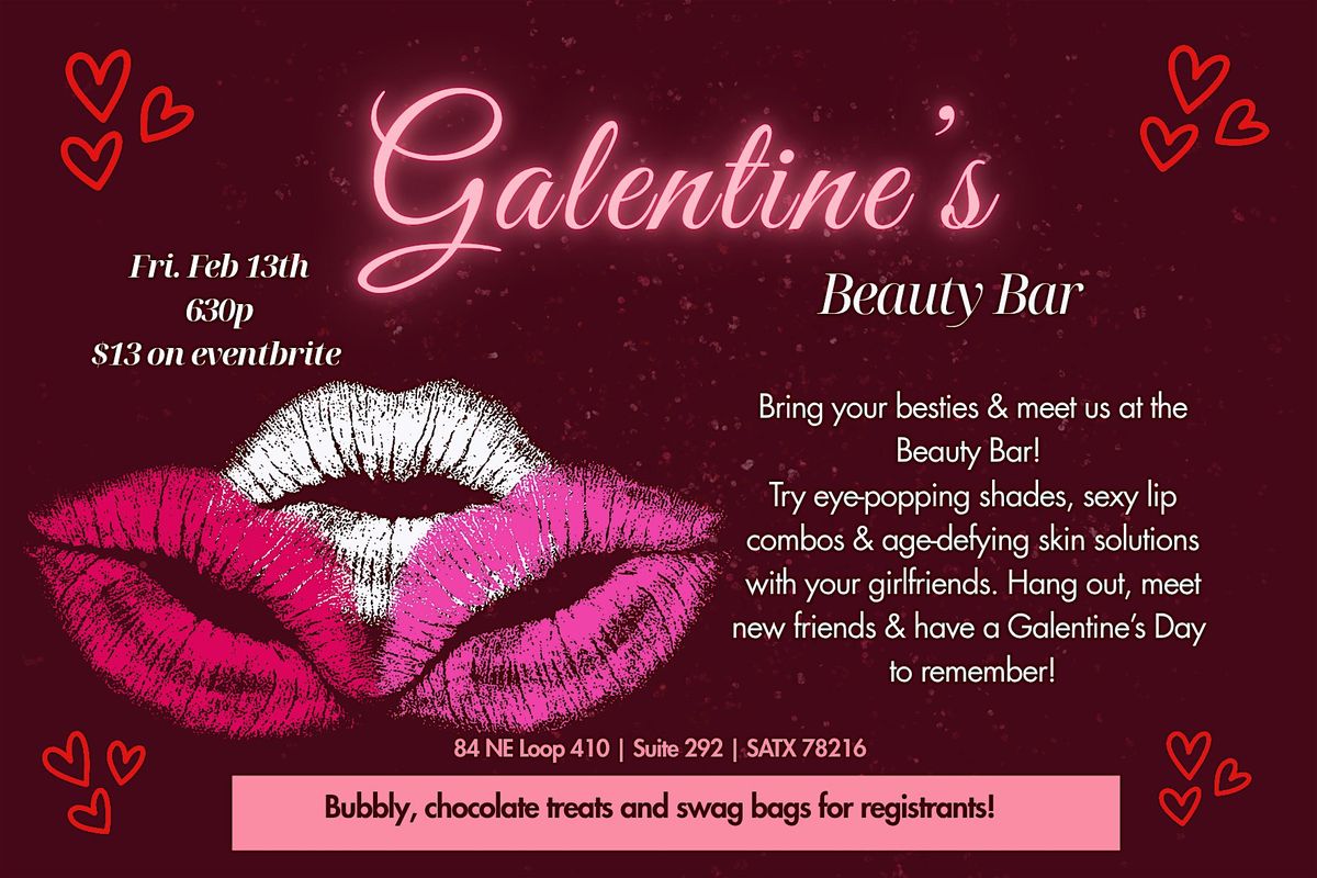 Grab your besties and join us at the Galentine's Beauty Bar event for a night of pampering & fun. Treat yourself to age-defying skin care, bold glam looks and luscious body treatments -- perfect for the season of LOVE!