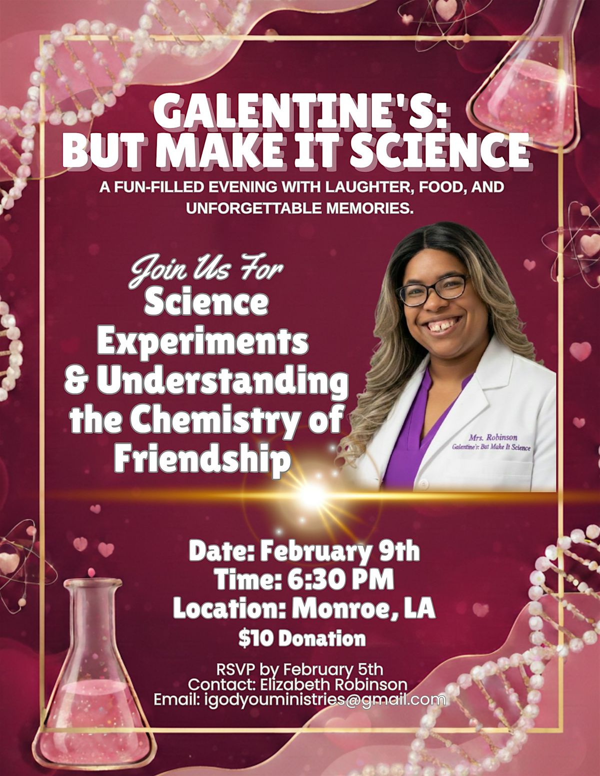 ❤️ Come out and enjoy a night filled with fun,food, laughter and creative science experiments with a Valentine twist.