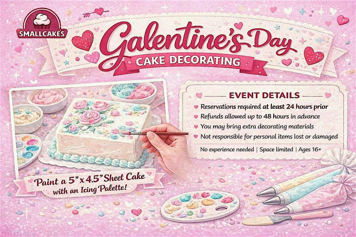 Join us for a fun and creative Galentine’s Day Cake Decorating Experience, designed for friends to gather, relax, and create something sweet together. Each participant will decorate their own 5 x 4.5 sheet cake using an icing palette technique, guided by a structured but enjoyable decorating session.