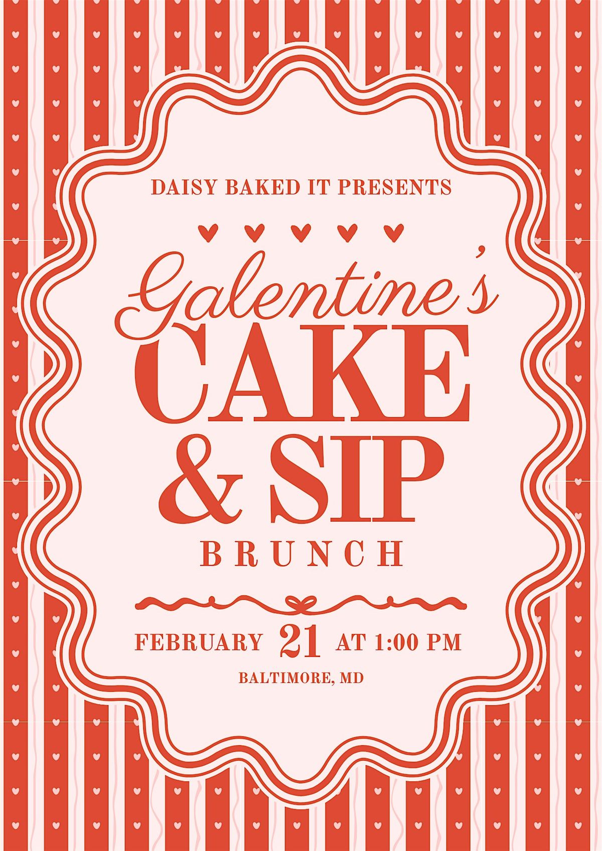 Grab your besties and join us for a fun, flirty Cake & Sip brunch made for laughter, vibes, and a whole lot of pink energy. This Galentine’s celebration is all about good food, cute cakes, bottomless cocktails, and quality time with your favorite people.