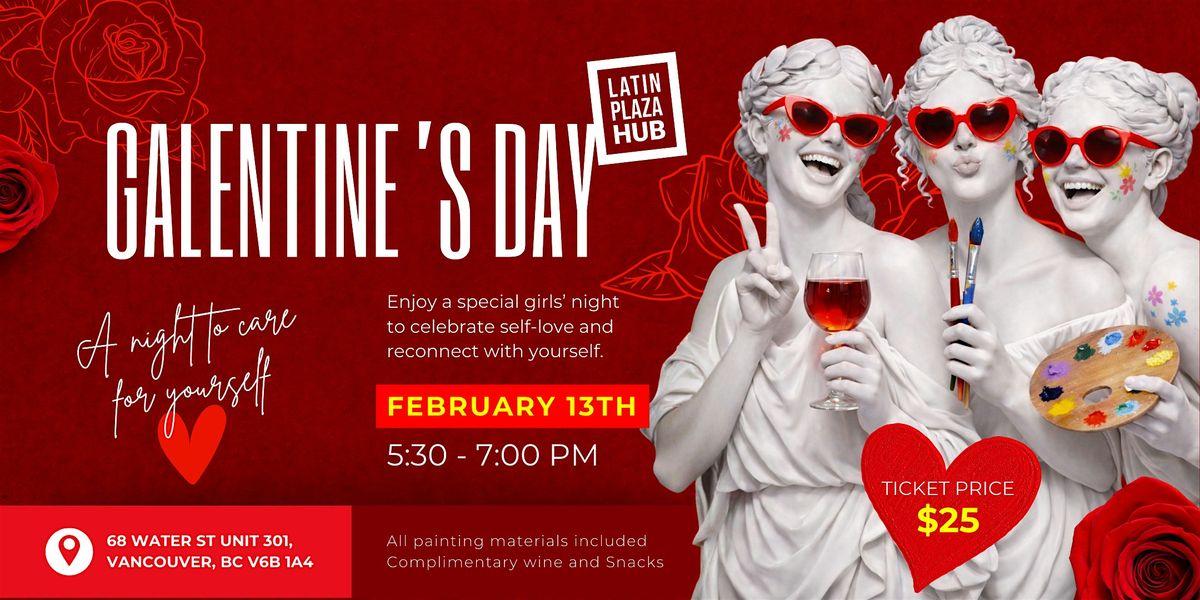 Celebrate Galentine’s Day in Vancouver with a fun and creative women-only Paint and Sip event at Latin Plaza Hub. This Galentine’s Paint Night is a girls-only experience, created for women looking for a unique Valentine’s Day activity in Vancouver in a welcoming and supportive environment.