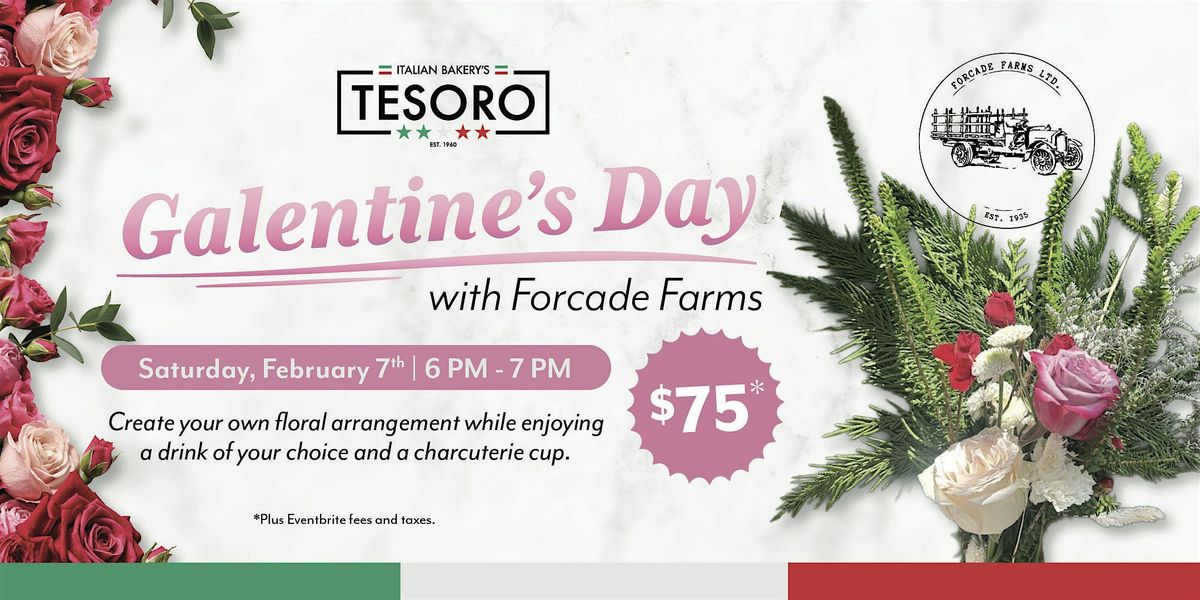 Welcome to Galentine's Day Bouquet Building with Forcade Farms at Tesoro! Join us for a fun evening of flower arranging and celebrating friendship.