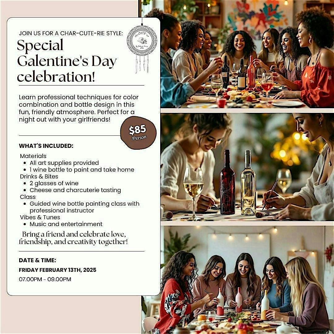 Limited spots available — reserve yours 🎨🍷 Galentine’s Paint & Wine Night! Paint a wine bottle, enjoy fun music, sip, laugh & celebrate friendship with great vibes 💖✨