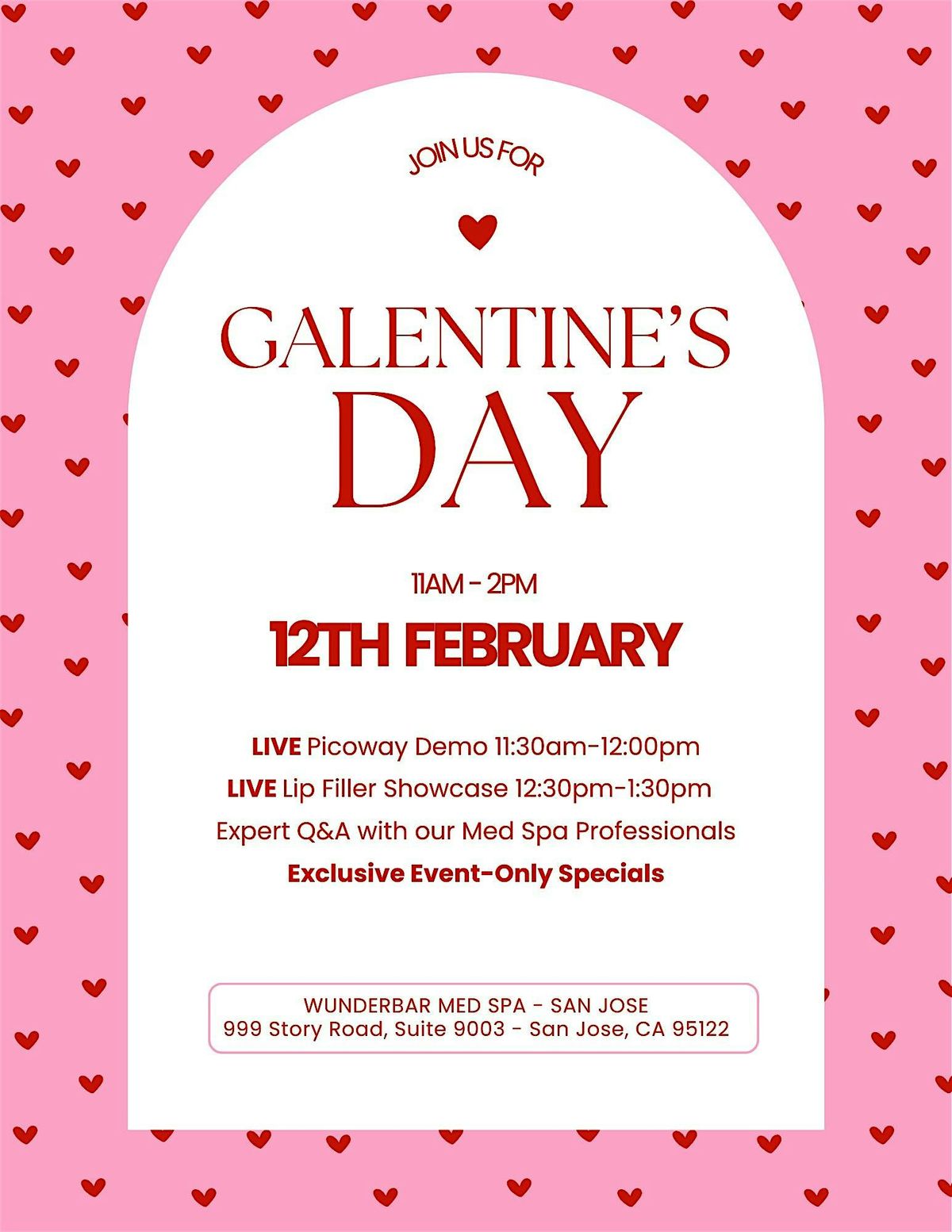 Grab your besties and join us for a fun, beauty-filled Galentine’s Day event at Wunderbar Med Spa in San Jose! Enjoy live aesthetic demonstrations, expert education, and exclusive event-only specials in a relaxed, festive setting.