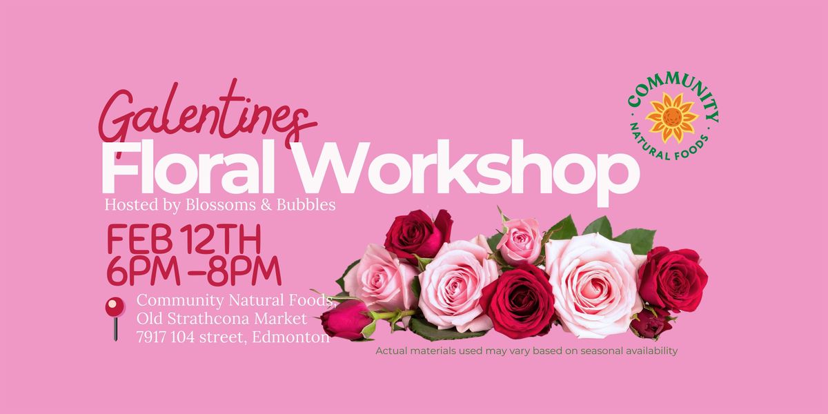 Join Blossoms & Bubbles for a cozy Galentine’s Day floral workshop at Community Natural Foods in Old Strathcona, where you’ll learn the basics of flower arranging and create a beautiful Valentine’s Day–themed floral centerpiece to take home.