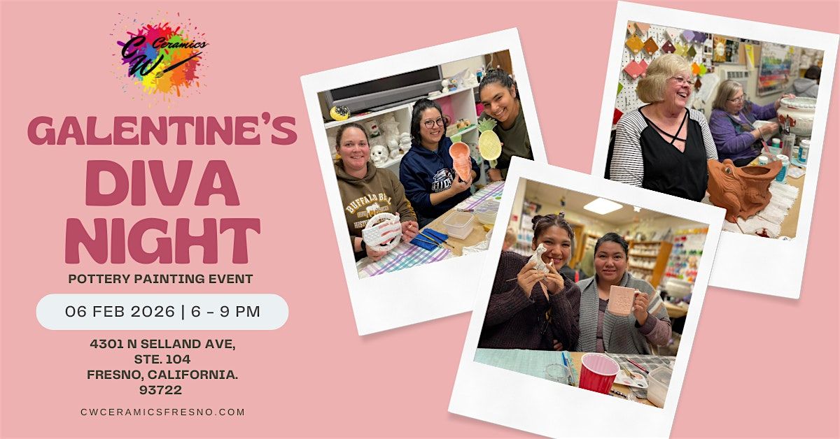 Join us for a 'divas only' evening of (non-alcoholic) drinks, dinner, dessert and of course painting! Choose from our extensive collection of items to paint, with prices starting at $15.