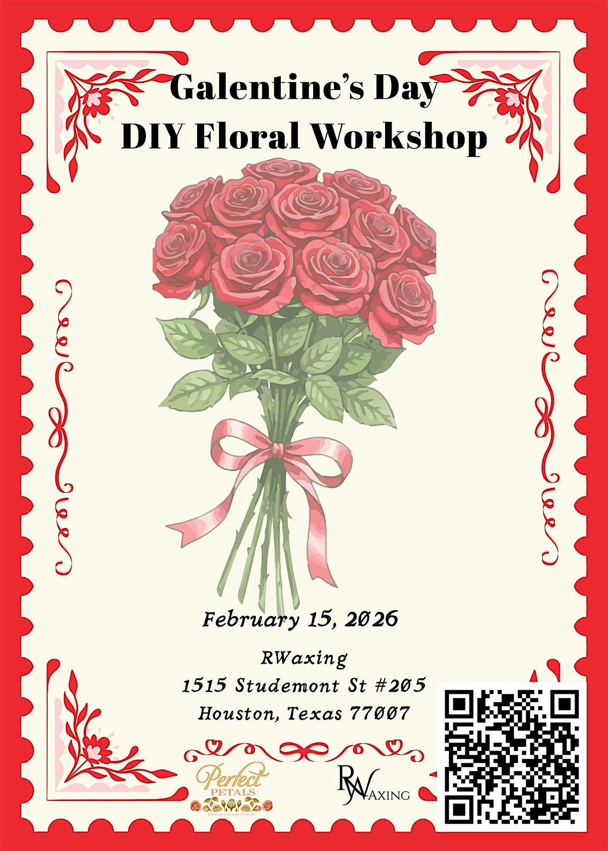 Come join us for a fun and creative afternoon at R Waxing! Let's celebrate Galentine's Day by making beautiful floral arrangements together. No experience necessary, just bring your creativity and positive vibes.