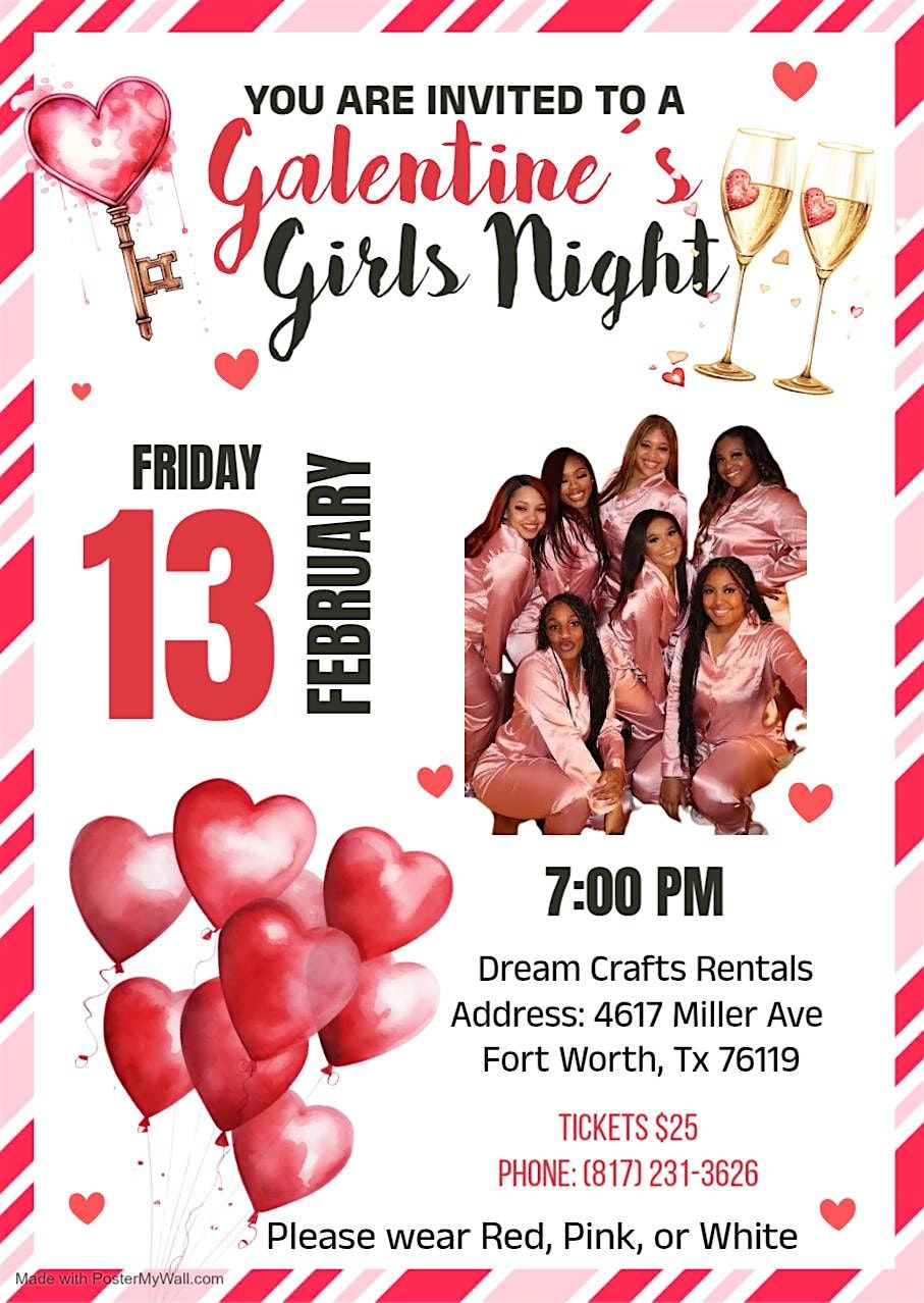 Get ready for an epic Galentines Girls Night! Join us for an in-person evening filled with laughs, great vibes, and fab company. Whether you're celebrating friendship or just looking to have a blast, this night is all about fun, bonding, and making unforgettable memories. Don your cutest outfit, bring your besties, and let's make it a night to remember! Games, Food, Music and More.
