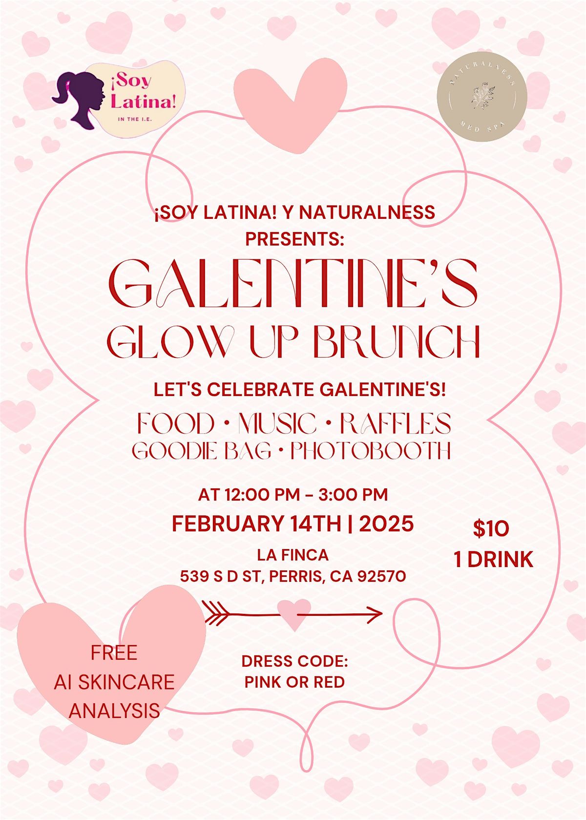 Hosted by ¡Soy Latina! in the IE x Naturalness Med SpaGrab your girls and come celebrate Galentine’s Day with us! 💕This brunch is all about friendship, self-love, and glowing up together.