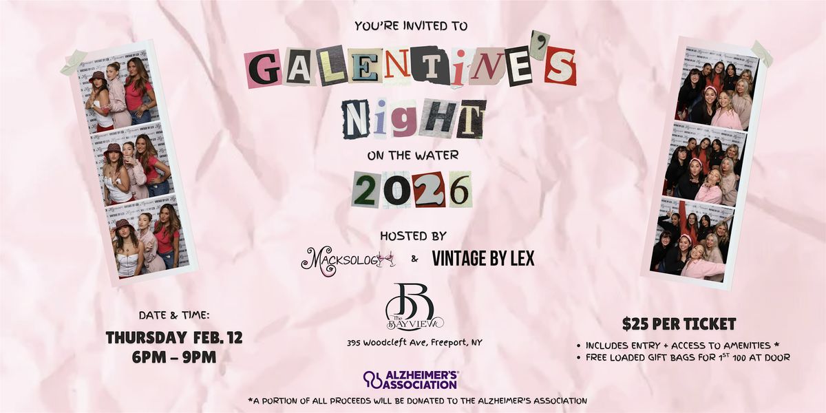 Join us for Galentine's Night 2026 at the stunning Bayview on the Water in Freeport, NY, on Thursday, February 12th from 6-9 PM. Hosted by Vintage By Lex and Macksologyy, it’s an evening filled with good vibes, amazing drinks, and even better company. Grab your bestie, your boyfriend, or even your mom — and get ready for the ultimate celebration! 🥂