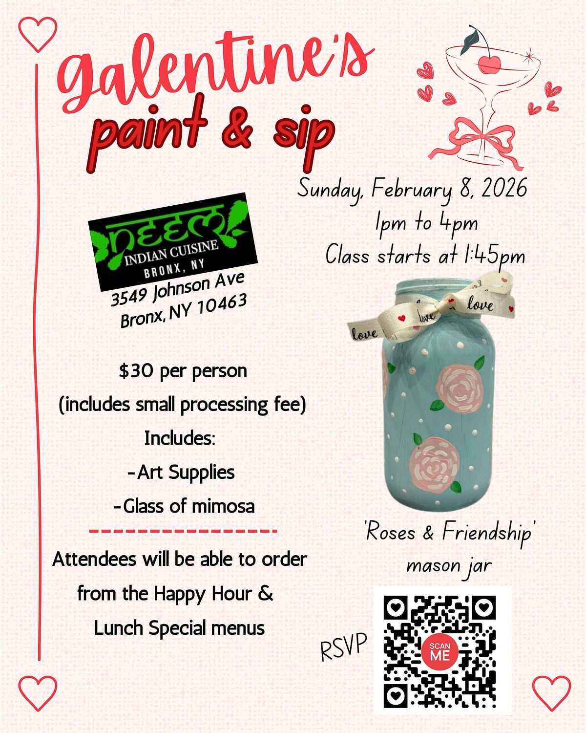 Grab your besties and join us for a fun-filled afternoon of painting, sipping, eating and laughter! This in-person event is all about celebrating friendship with vibrant colors, tasty drinks, and delicious food. No art skills needed—just bring your creativity and good vibes. Let's make some memories and masterpieces together at Galentine's Paint & Sip!