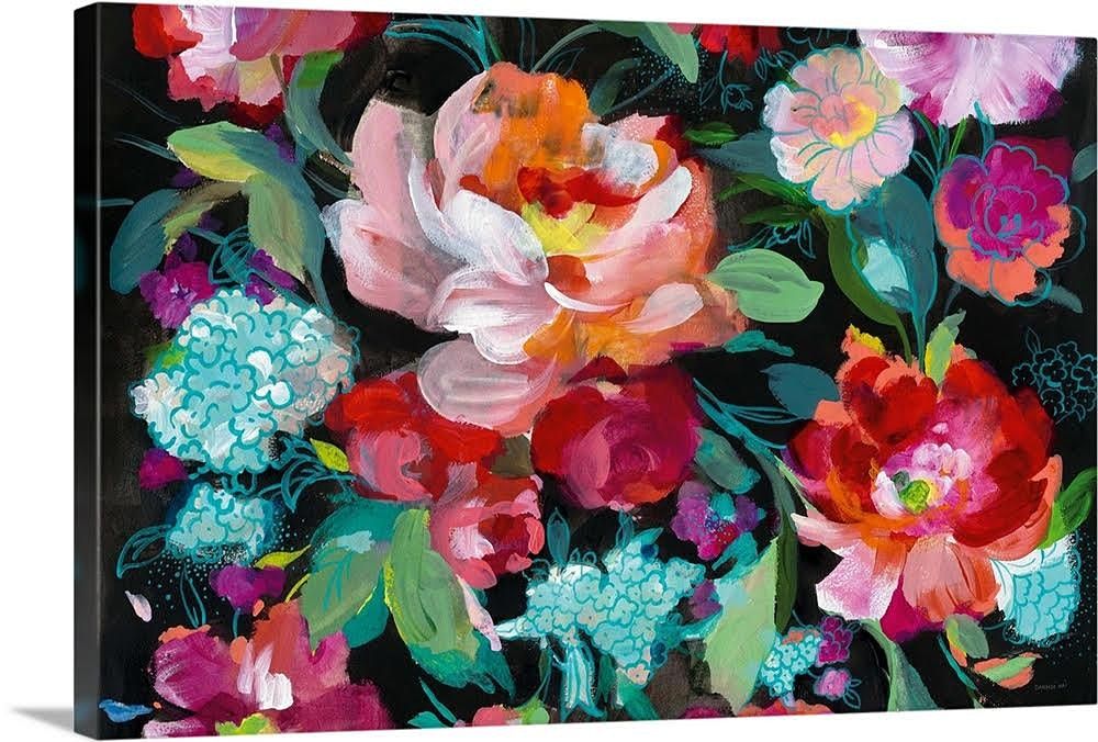 +The painting is a floral scape that allows for playfulness, exciting color combinations and textural fun
