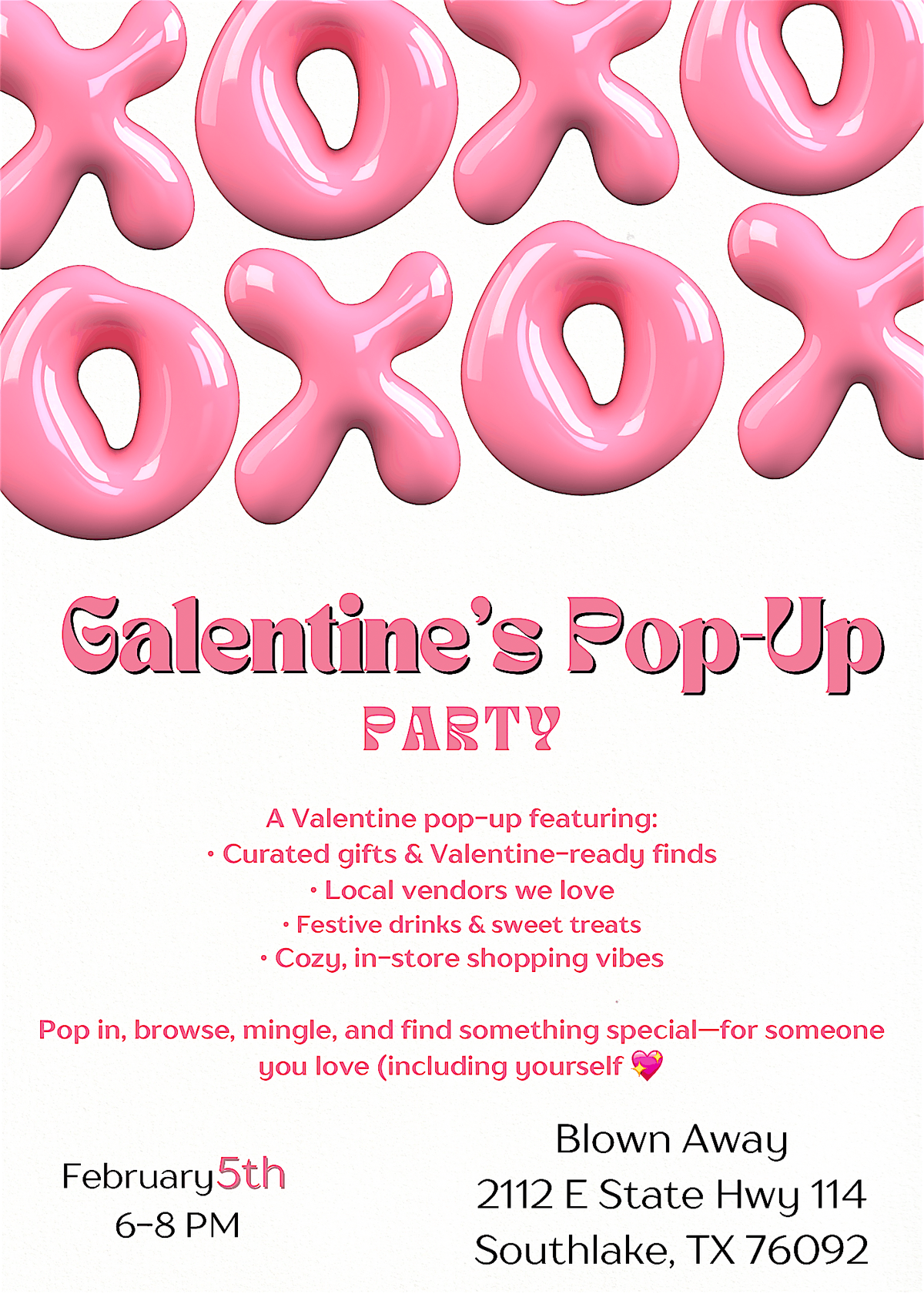Grab your girls and guys and stop by Blown Away for a Galentine’s shopping party celebrating friendship, style, and a little Valentine sparkle.