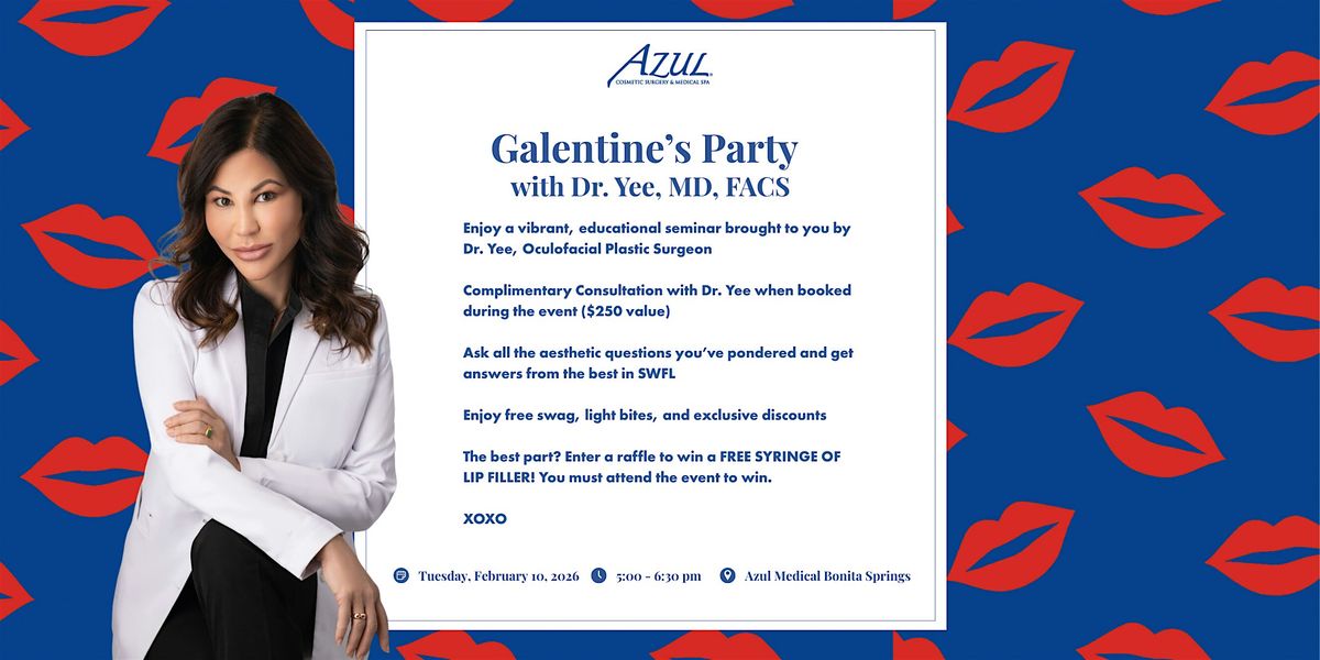 Grab your gals and join us for a fun-filled Galentine's Party with the one and only Dr. Yee! Join us for an interactive seminar, small bites, free swag bags, and a raffle to win FREE LIP FILLER at our Bonita Springs location.