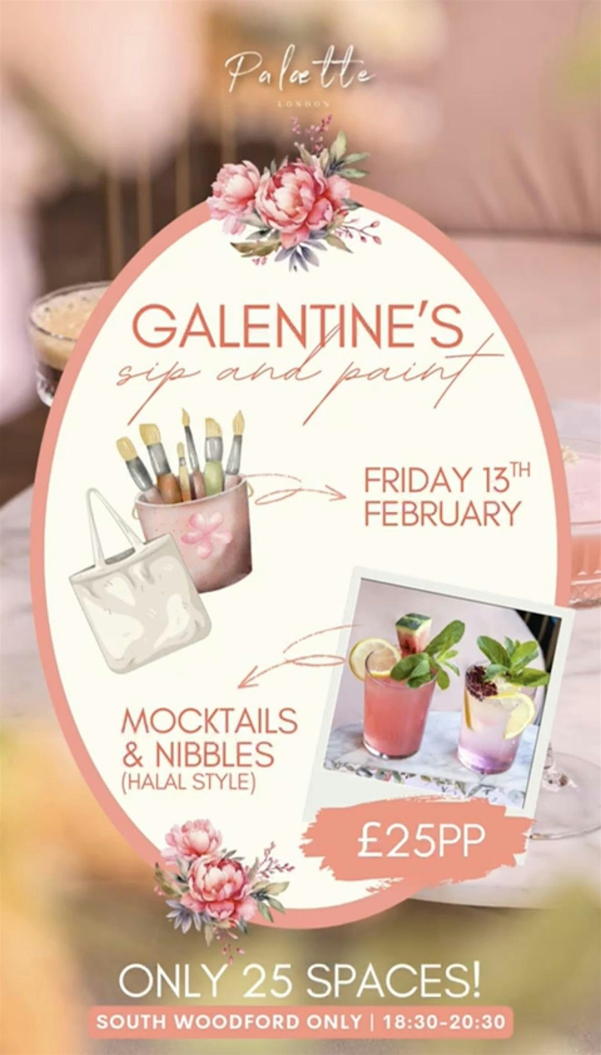 Grab your besties and join us for a fun-filled Galentines Sip and Paint session, Halal Style! Unleash your creativity, painting on tote bags you can take and use. Enjoy some tasty halal refreshments a glass of mocktail included. celebrate sisters in person. No experience needed—just bring your girl vibe and let’s make some beautiful memories together. It’s all about laughs, colors, and good company. Don’t miss out on this awesome chance to bond and paint your heart out!