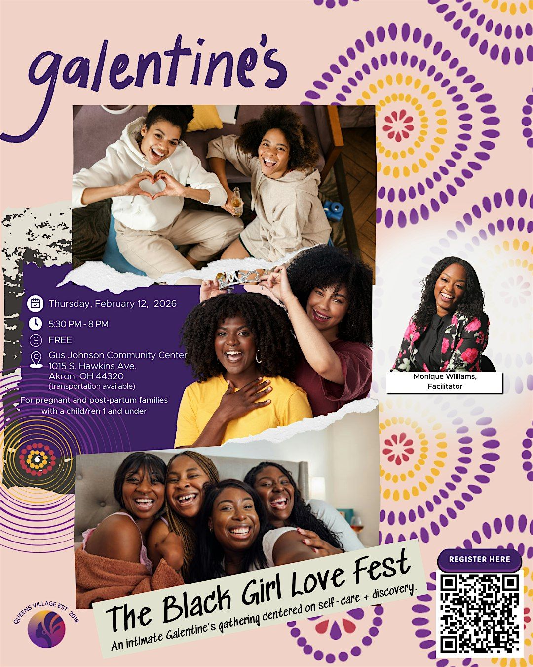 Join us for an intimate Galentine's gathering created especially for Black pregnant and postpartum women. This is a soft place to exhale -centered on self-care, genuine connection, and personal discovery.