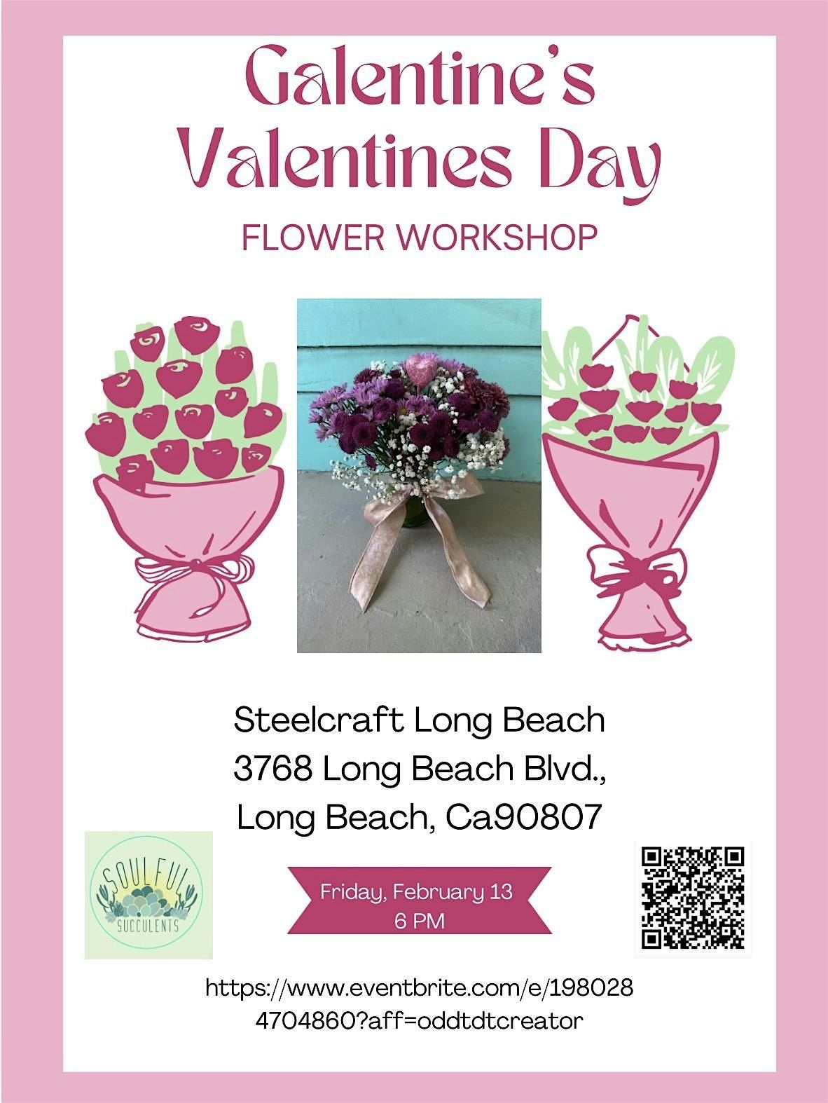 Get ready for a fun, hands-on flower arranging session this Galentine's/Valentine's! Whether you’re celebrating your besties or your special someone, join us in person to craft beautiful blooms and share lots of laughs. No experience needed – just bring your smiles and your love for flowers! Maritza Aguirre from Soulful Succulents will instruct you thru the floral process.