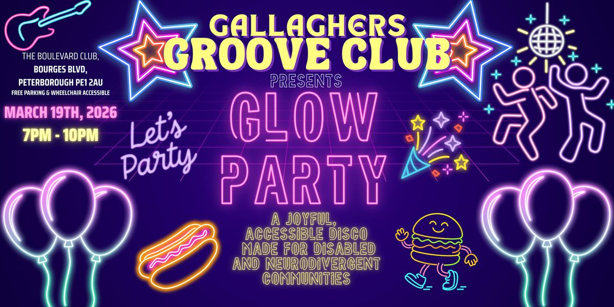 Our Glow Party is a club-style disco by brought to you by the Gallaghers Groove Club, created for disabled and neurodivergent adults.
