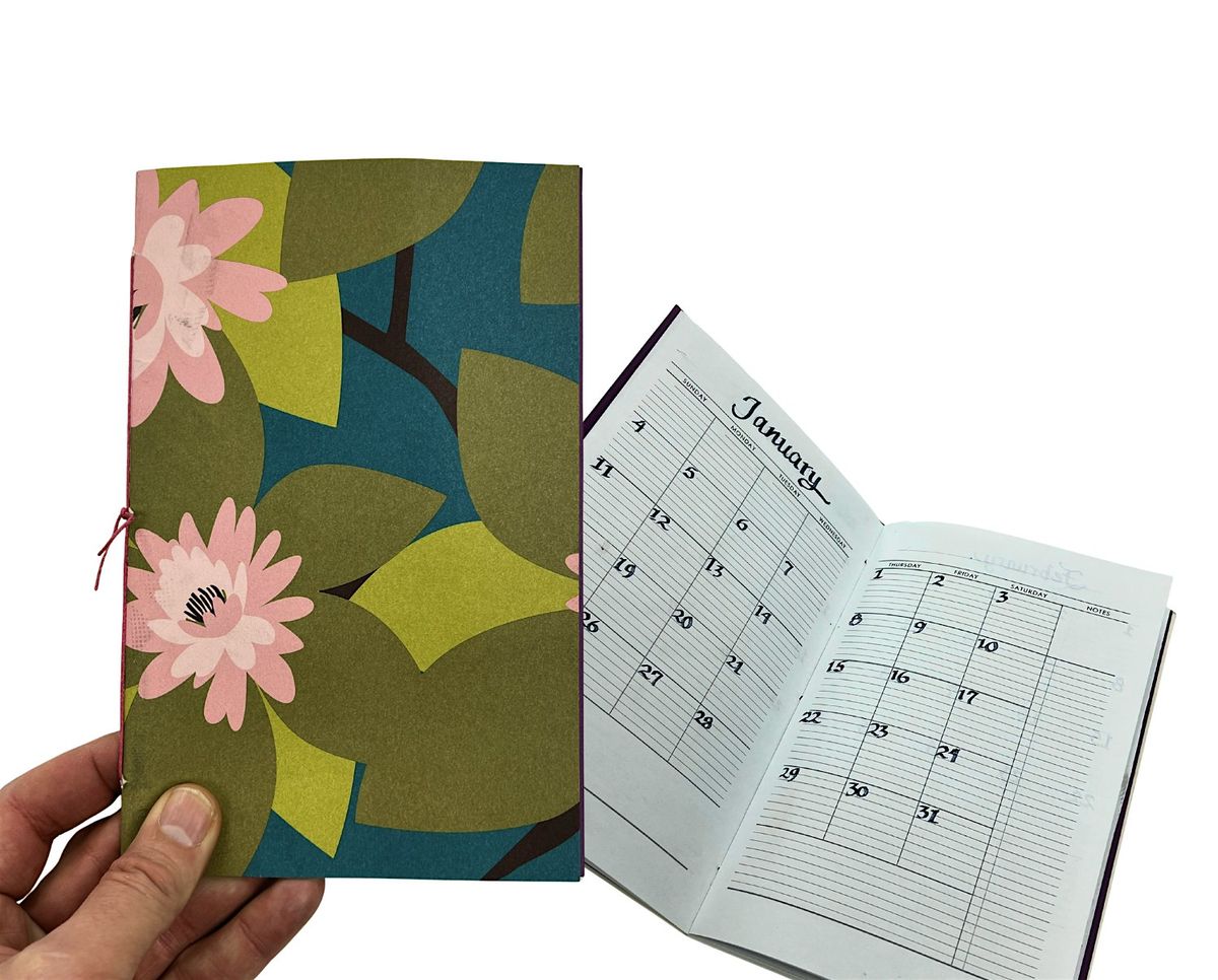 We are pleased to have Linda Dunbar lead us in combining art and positive psychology for the coming year by creating a simple 8 1/2 x 5 1/2 calendar for 2026. As we're creating the calendars, we are mindful of our intentions and goals for the year. It will feature a very simple book sewing technique, and lettering techniques. Free to attend, donations appreciated.