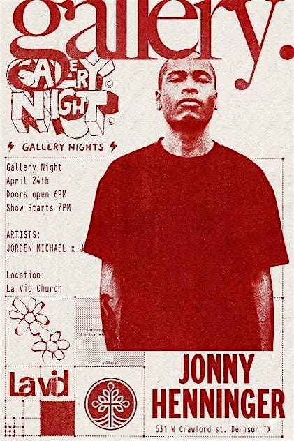 The Gallery Mission is to serve the body of Christ through fine art. As a collective, we create galleries for the Lord's enjoyment. This event will be hosted at Iglesia La Vid, in Denison, TX. This night will feature creative expression from artists Jonny Henninger and Jorden Michael. There will be incredible coffee for purchase, merchandise, and incredible art to enjoy.
