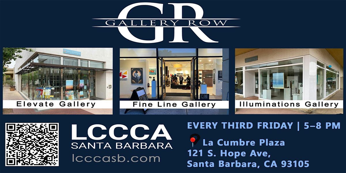 Join us for the La Cumbre Gallery Row Art Walk – 3rd Friday, 5–8 PM. Enjoy art, music, and inspiration. Participating Galleries: La Cumbre Center for Creative Arts LCCCA): Elevate, Fine Line and Illuminations Gallery; Voice Gallery; Museum of Tibetan Art & Culture, Grace Fisher's Inclusive Arts Clubhouse. Guests can enjoy live music, wine, and a wide range of new artwork by talented local and regional artists. The evening offers a relaxed, welcoming atmosphere where visitors can meet the artists, explore fresh exhibitions, and experience the creative energy of Santa Barbara’s art community.