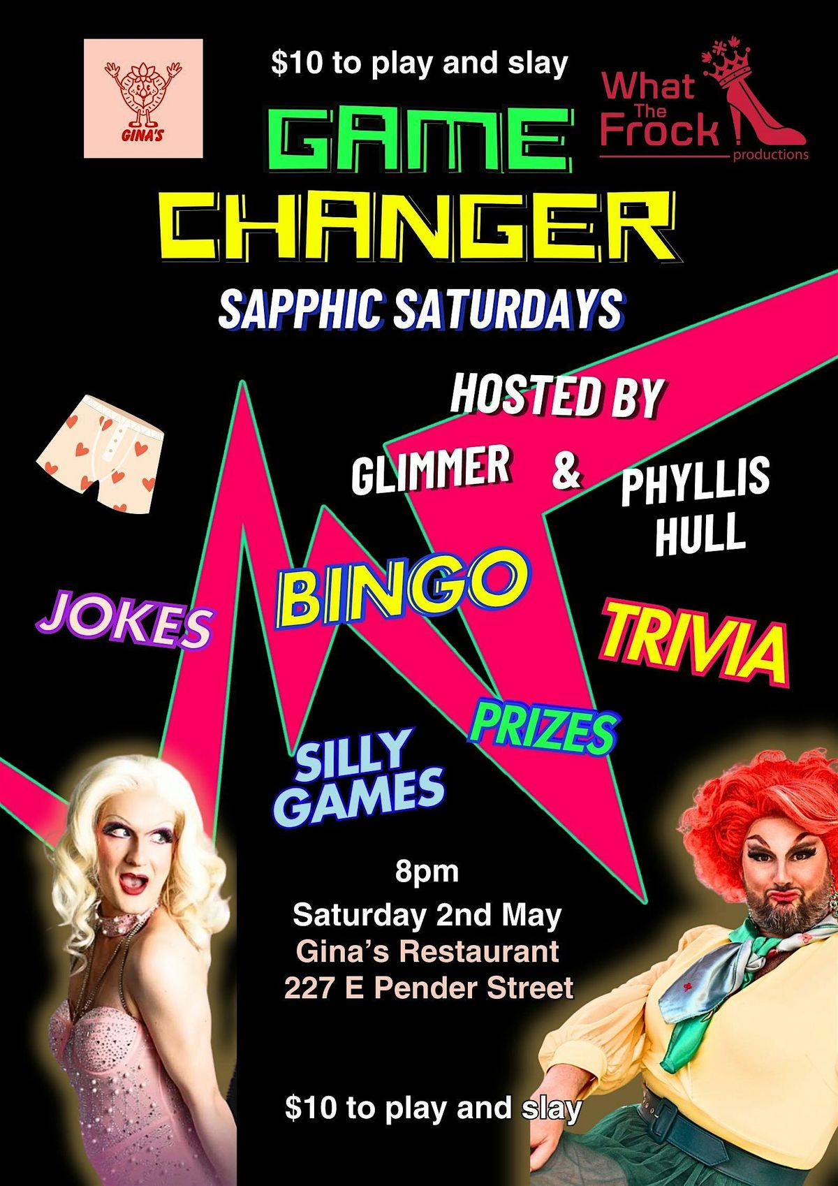 Organized by What The Frock Productions and hosted at Gina's, expect a night full of surprises and prizes!