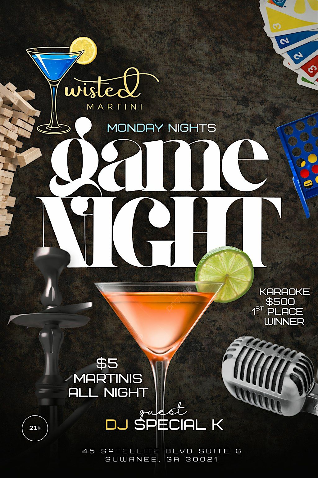 Monday nights hit different at Twisted Martini Pull up for Game Night Mondays with games, vibes, and nonstop fun.