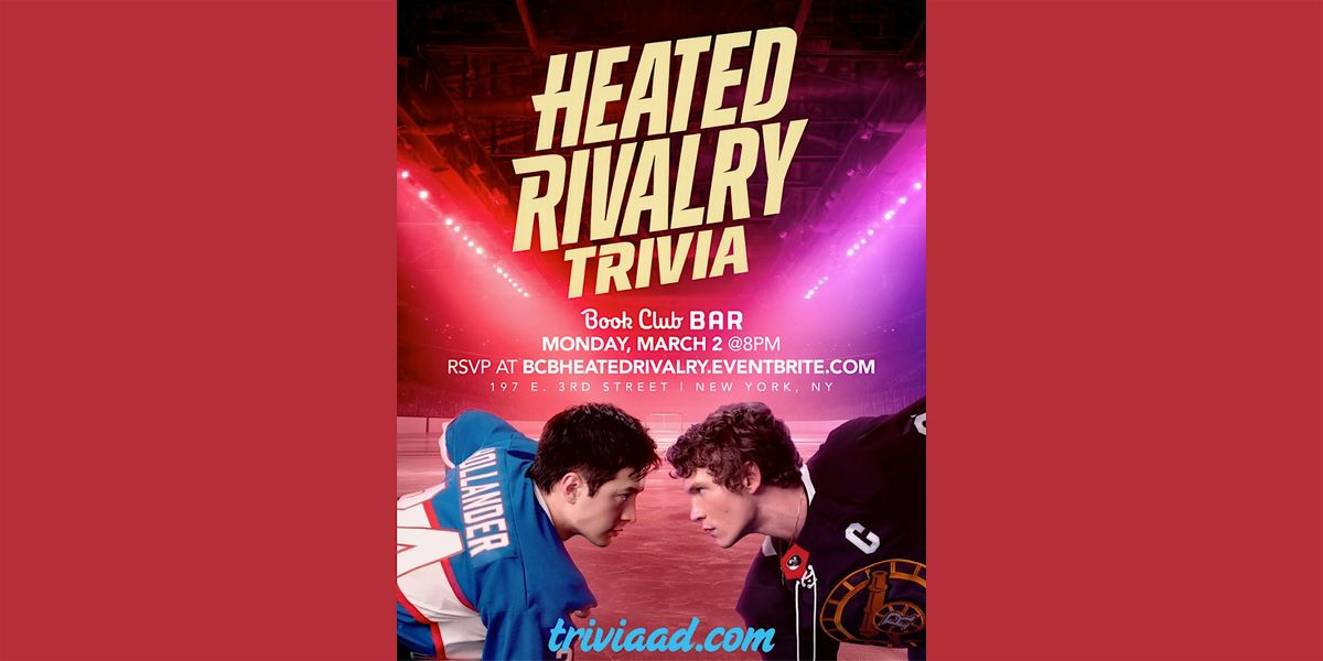 We’re bringing Heated Rivalry trivia to life at Book Club Bar on Monday, March 2, at 8pm, with questions covering Game Changers and Heated Rivalry by Rachel Reid, plus the Crave/HBO series "Heated Rivalry." We’ll cover the early clashes to years of unresolved tension, unforgettable moments on and off the ice, and the kind of chemistry that should honestly be illegal.