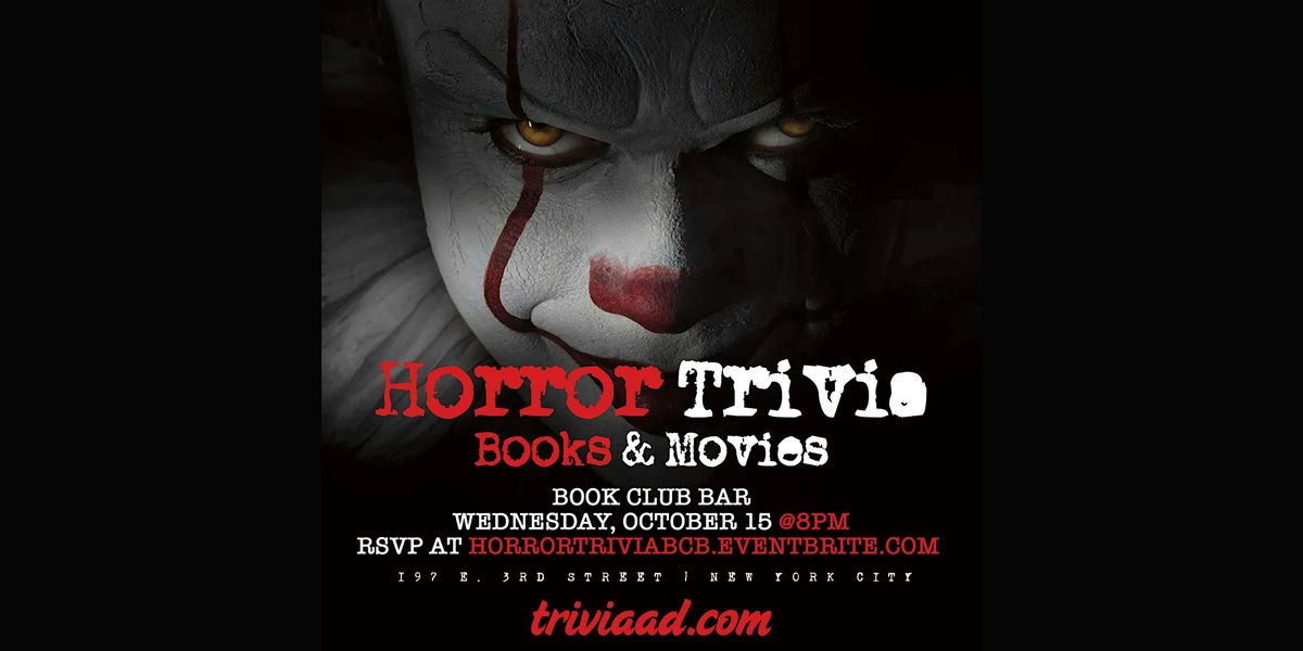 Gather your most fearless friends and step into the shadows for a night of thrills, chills, and trivia at Horror (Books & Movies) Trivia on Wednesday, October 15 at 8pm at Book Club Bar!