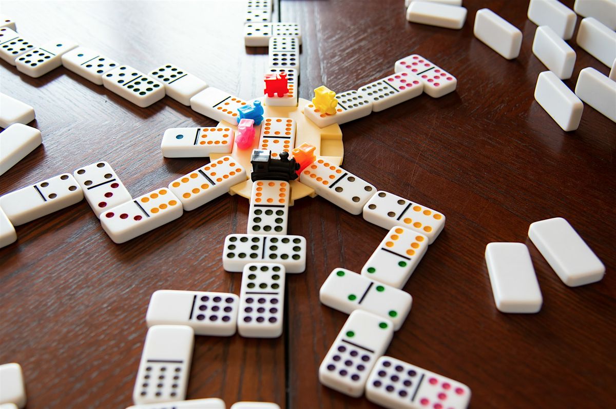 Mexican Train has become a popular game with dominos in which the goal is for participants to play all of the tiles from their hands onto one or more chains – or trains – emanating from a central hub or "station."
