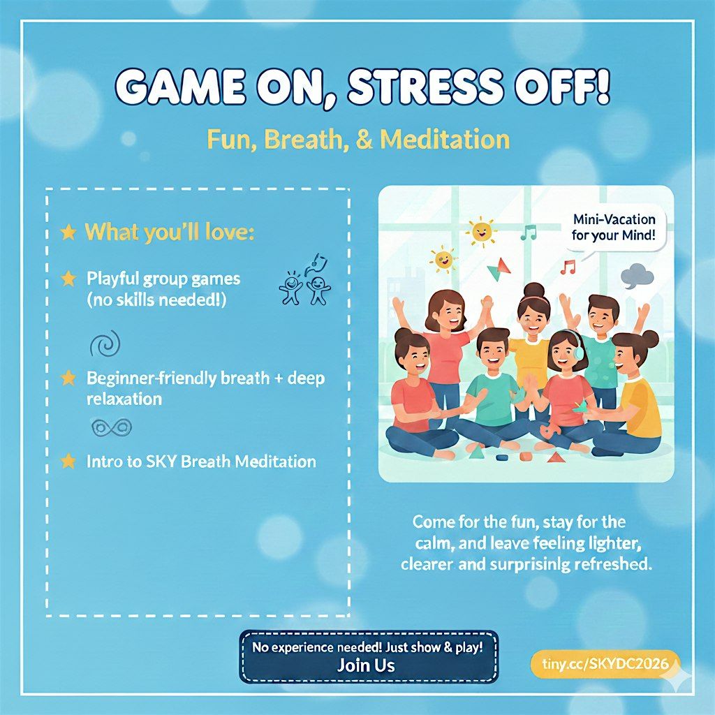 Game On, Stress Off: Fun, Breath, and Meditation is a light-hearted, feel-good session designed to help you unwind without taking yourself too seriously.Â