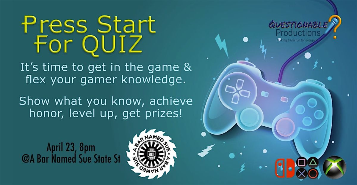 Ready to prove you’re more than just a button-masher? No cheat codes, walkthroughs, or respawns here—just pure gaming knowledge at – Press Start for QP Trivia! on Thursday, April 23rd at A Bar Named Sue (State Street) for your chance to turn all that screen time into sweet, sweet victory! From retro classics to modern masterpieces, we’re loading up questions that span consoles, PCs, and everything in between.