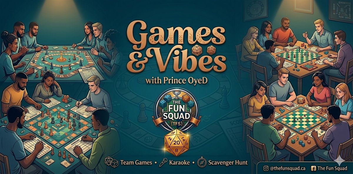 Hosted by The Fun Squad (TFS), Games & Vibes brings you special a Spring edition featuring Scavenger Hunt, Interactive team challenges, wild improv, Karaoke, and more, all led by our electrifying Games Master - Prince OyeD.