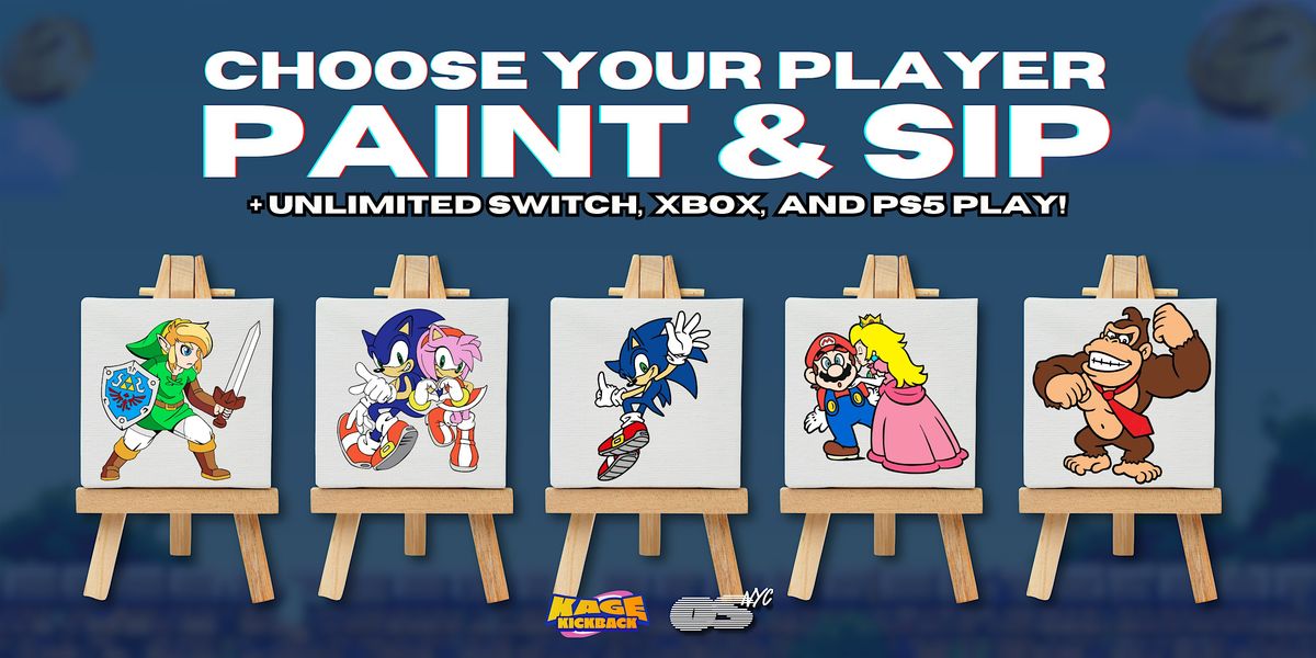 Gaming Paint and Sip: Choose Your Player + Unlimited Video Games