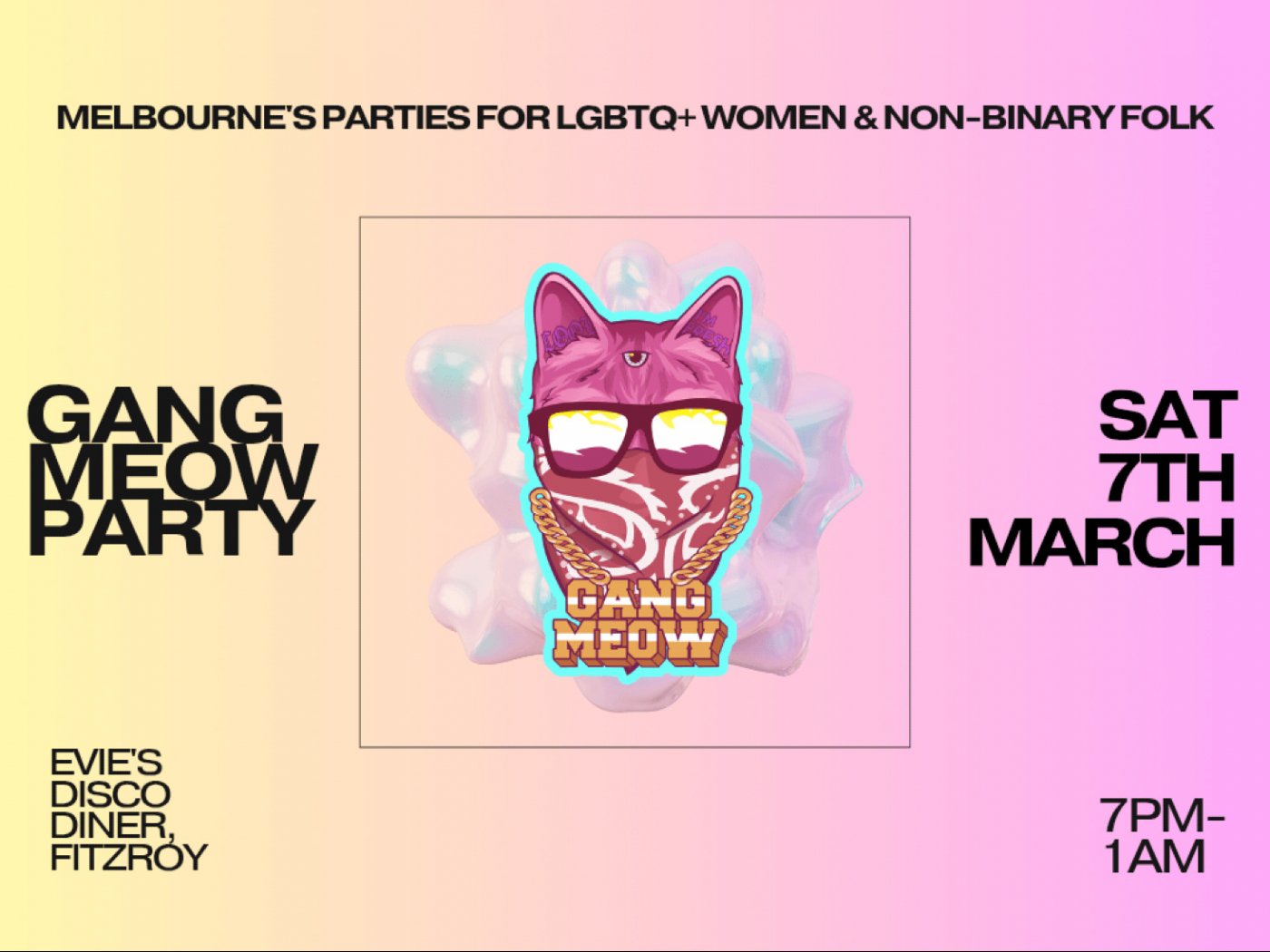 Experience LGBTQ+ sexuality & empowerment at its finest at the Gang Meow Party on Saturday, March 7th as we team up with Melbourne's most iconic inclusive venue Evie's Disco Diner!