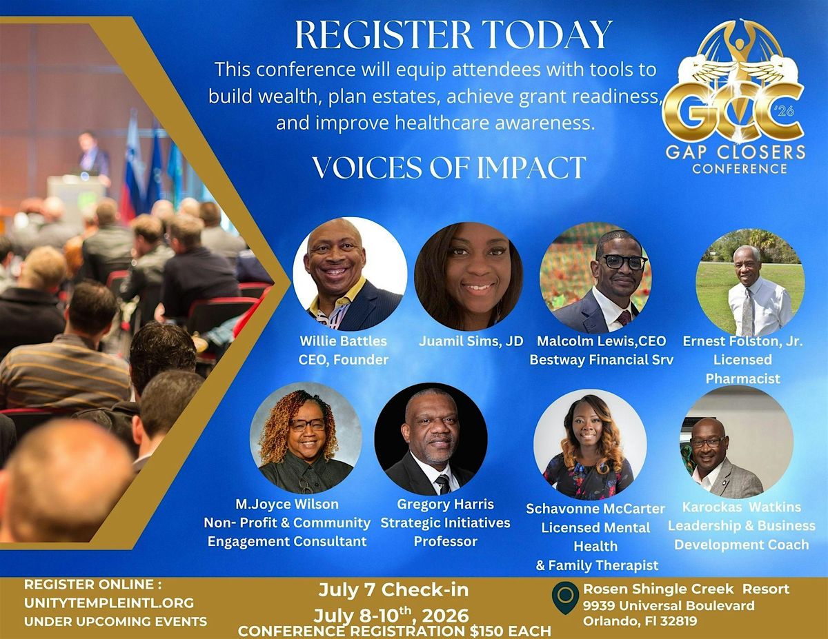 The Gap Closers Conference 2026. Bridging Vision. Building Leaders. Creating Legacy.