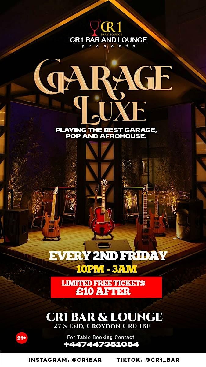 ANother musical experience at CR1. Get ready to rewind and vibe to the best garage tunes! Only at CR1
