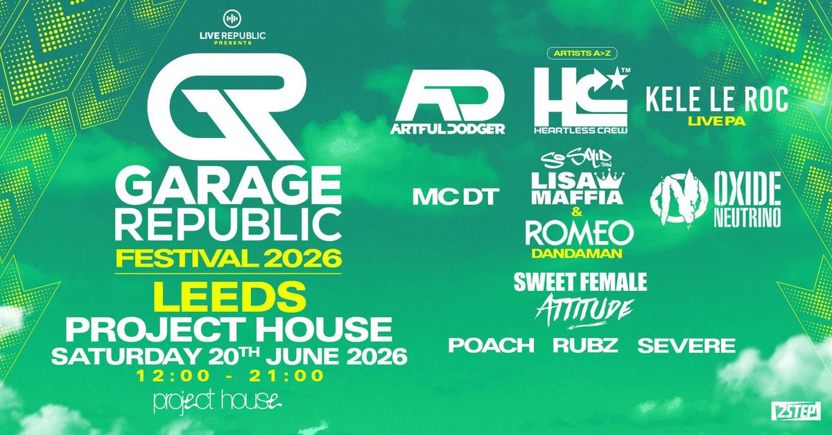 Garage Republic Festival 2026 - Leeds Edition! π₯Get ready, Leeds - the Garage Republic Festival 2026 is rolling into town!On Saturday 20th June 2026, Project House transforms into the home of pure UK Garage and 2-Step energy from 12:00 PM to 9:00 PM.π