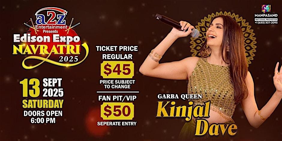 Get ready for a high-energy Garba night with the one and only KINJAL DAVE ! , live in Edison Expo Hall ! Celebrate tradition, music, and community as we bring you the biggest Garba event of the season at the spacious and vibrant Edison Expo Hall.