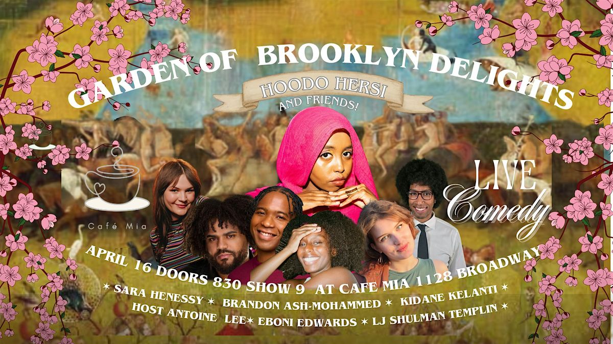 Hoodo Hersi headlines a stacked show here in brooklyn at cafe mia. Featuring Bradon Ash-Morgan, Sara Hennessey, Eboni Edwards, Kidané Kilante, LJ Shulman-Templin, and Hosted by Antoine Lee. Come laugh with us under the cherry blossoms at Cafe Mia. SERIOUSLY. Its like sitting in a little garden.